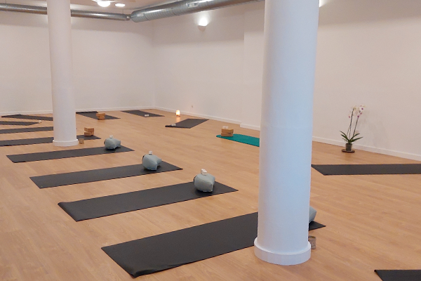Cuenta para ello de una espaciosa antesala que asegura la cómoda accesibilidad y preparación antes y después de la práctica, dos salas (una, la principal, de 90 m2 y otra de 30 m2), un espacio polivalente de gran amplitud como continuación de la antesala y unos servicios de aseo adaptados a todo tipo de personas incluidas las que presentan discapacidad motriz. De toda esta disponibilidad espacial, poco frecuente en centros dedicados exclusivamente al Yoga, destaca como es lógico la gran sala de práctica que proporciona el marco ideal para el desarrollo de ejercicios, asanas y meditaciones en unas condiciones que tanto principiantes como practicantes avanzados valoran por la motivación que suponen como entorno físico y mental comprensivo, compasivo, sin juicios y haciendo consciente lo que se agazapa en lo inconsciente.